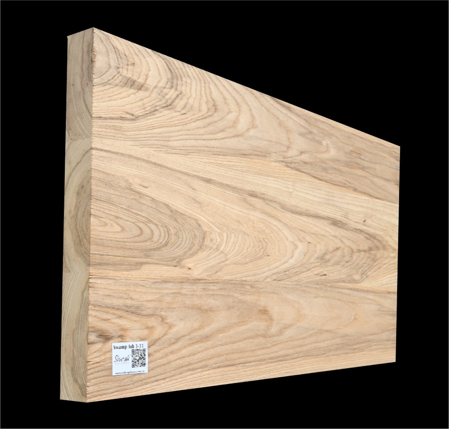 Bahenný Jaseň (Fraxinus americana) pochádza z močaristých oblastí juhu USA. Toto drevo je ľahké, porézne a veľmi hudobné – ideálne na výrobu tiel elektrických gitár a basgitár. Je známy svojou výbornou rezonanciou, rýchlym attackom, jasnými výškami, pevnými basmi a teplým tónovým vyvážením. Štruktúra pórov je otvorená, farba svetlo krémová s výraznou kresbou. Každý kus má svoj jedinečný charakter. Drevo je technicky sušené a pripravené na použitie.