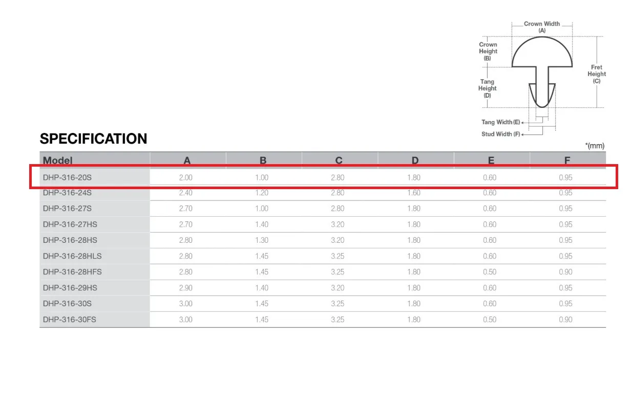Využitie: Odolná náhrada za vintage pražce, vhodná pre Vintage gitary, Mandolíny a Banjá. Ideálna voľba pre tradičné štýly, bluegrass a nástroje vyžadujúce dlhú životnosť pražcov.