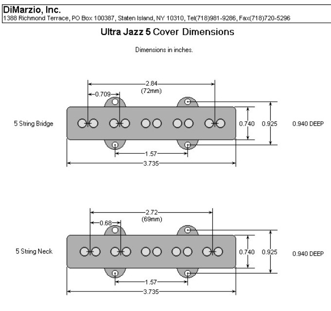 Basgitarové snímače Dimarzio Area J 5 Pair pre 5 strunovú Basgitaru (9,32 / 9,56 K) neck + bridge Čierna