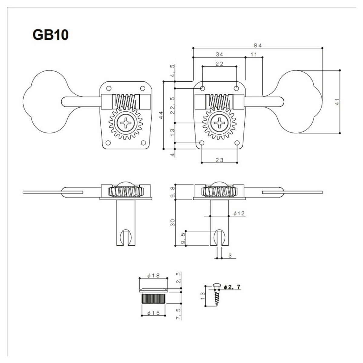 [Gotoh GB10 Single Bass Tuner Machine Right Side Nickel]