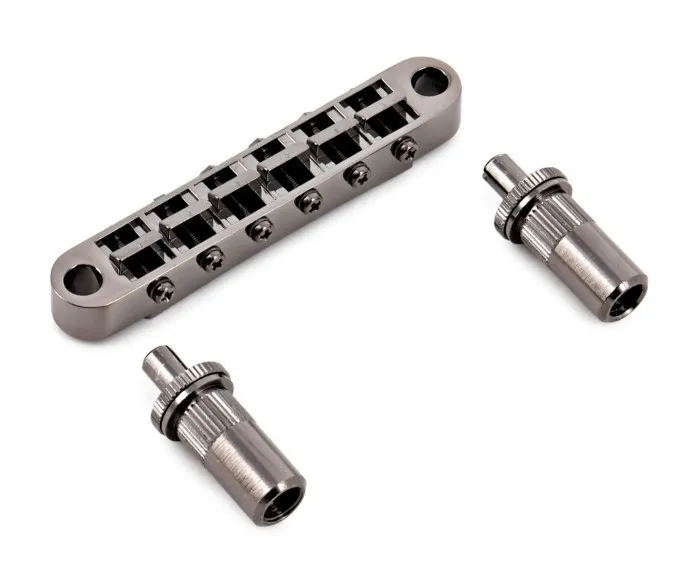 Gotoh GE103B-T v exkluzívnom prevedení Cosmo Black predstavuje špičkový vysokokvalitný náhradný diel určený pre 6-strunovú elektrickú gitaru. Táto japonská kobylka typu Tune-O-Matic je navrhnutá pre maximálnu stabilitu ladenia a precízne nastavenie intonácie na nástrojoch typu Les Paul či SG. Upevnenie zabezpečujú dva masívne tŕne M8 s rozostupom 74 mm, čo zaručuje pevný kontakt s telom, lepší prenos vibrácií a prirodzený sustain. Vďaka rádiusu 300 mm a odolným sedlám z tvrdeného zinku je ideálnou voľbou pre profesionálny upgrade hardvéru.