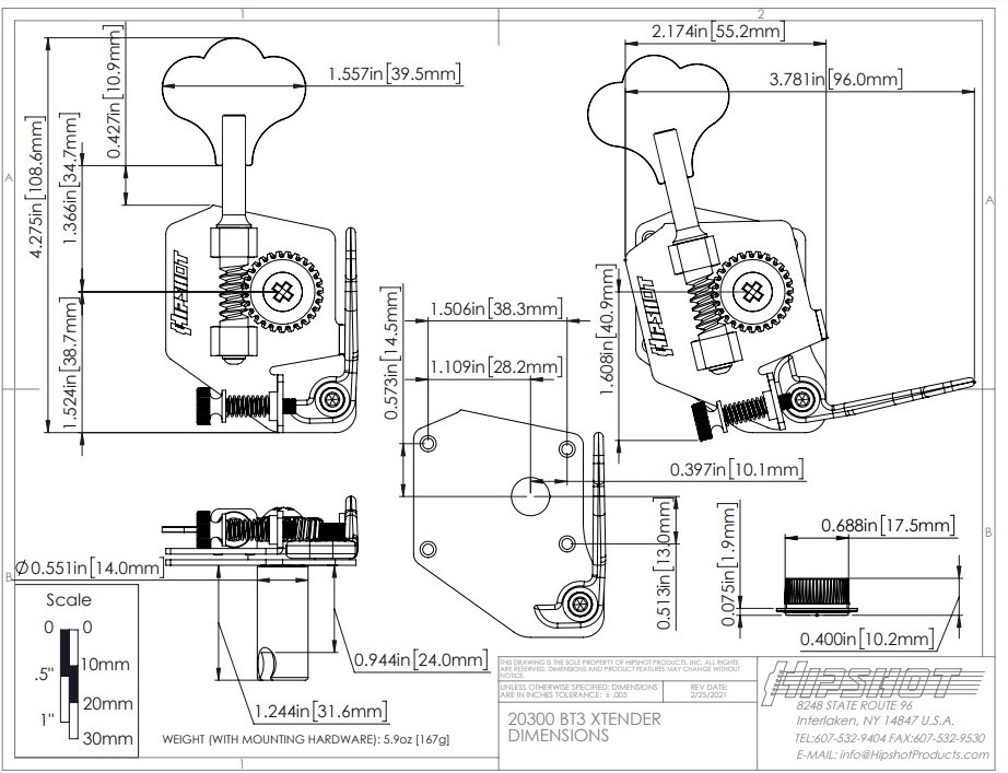 Model Hipshot BT3 je vysokokvalitný podladzovač navrhnutý pre basgitaristov, ktorí chcú rozšíriť tonálny rozsah svojho nástroja bez straty vintage charakteru. Tento mechanizmus umožňuje bleskové podladenie struny (najčastejšie z E na D, prípadne až po nízke B) jednoduchým pohybom páčky a jej následný návrat do pôvodnej polohy. BT3 je priamou náhradou za reverzné ladiace mechaniky Kluson®, ktoré sa štandardne nachádzali na basgitarách Fender® z obdobia pred rokom 1965 (Pre-CBS).