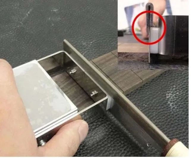 Hosco H-FSWG je vysoko kvalitný japonský prípravok určený na maximálne presné a kolmé narezávanie drážok pre pražce (fret slotting). Tento nástroj odstraňuje neistotu pri ručnom rezaní tým, že drží pílku v perfektnom pravom uhle voči hmatníku pomocou troch silných neodymových magnetov. Magnety sú zapustené v bielom polyacetálovom vodítku, ktoré zabezpečuje hladký sklz pílky bez trenia a zároveň ju pevne fixuje v dráhe.