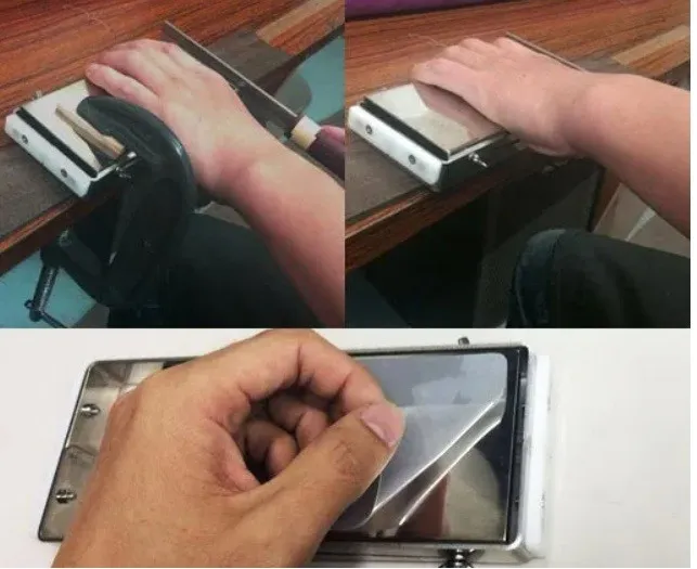 Prípravok disponuje integrovanou kontrolou hĺbky rezu, ktorú je možné plynule nastaviť v rozsahu od 0 mm do 5,3 mm. Akonáhle zadná časť čepele pílky narazí na okraj prípravku, rezanie sa zastaví, čím sa zabezpečí identická hĺbka každej drážky na hmatníku. Spodná strana je vybavená odnímateľnou protišmykovou silikónovou podložkou, ktorá zaručuje stabilitu prípravku aj pri držaní rukou. Pri použití stolových svoriek je možné podložku jednoducho odobrať, aby nedošlo k jej poškodeniu.