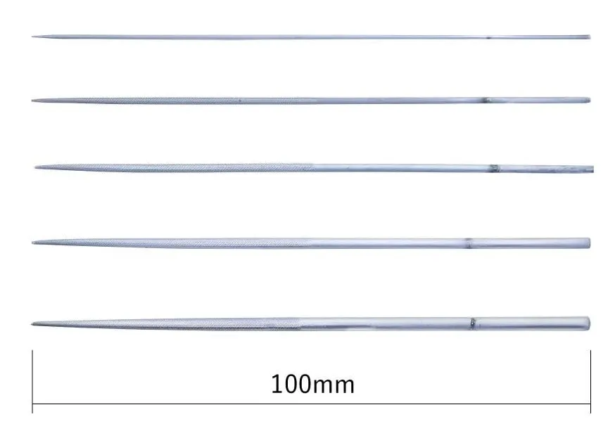 Sada obsahuje päť rôznych priemerov od 0,8 mm do 2,5 mm, čo pokrýva široké spektrum potrieb pri servise strunových nástrojov. Každý pilník má dĺžku 100 mm, čo poskytuje ideálnu rovnováhu medzi precíznym vedením a dostatočnou plochou na úber materiálu. Vďaka vysokej tvrdosti japonskej ocele si pilníky zachovávajú ostrosť aj pri práci s tvrdými kovmi alebo syntetickými materiálmi nultých pražcov.