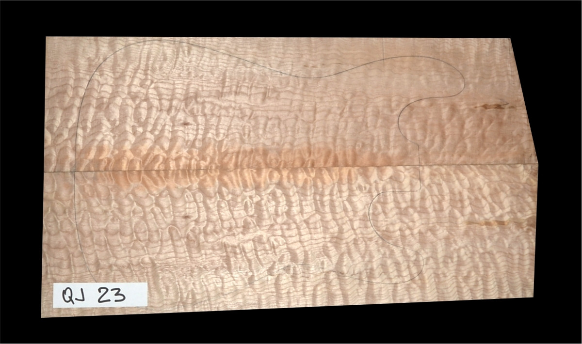 Quilt javor (quilted maple) patrí medzi najatraktívnejšie dreviny pre vrchné dosky gitár vďaka svojej „vlnovej“ 3D kresbe, ktorá vytvára luxusný a pútavý vzhľad najmä pod priehľadným alebo polopriehľadným lakom. Tento konkrétny pár QJ-23 predstavuje výberový, nelepený masív profesionálne vysušený a presne opracovaný na hrúbku cca 5 mm – pripravený priamo do výroby.