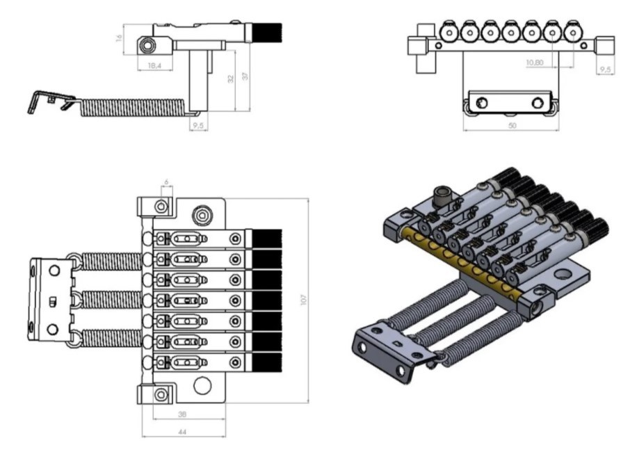 Tremolo kobylka pre 7 strunové bezhlavé gitary - 1